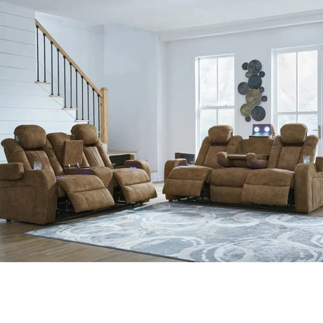 Fairway Brown Power Double Reclining Living Room Set
